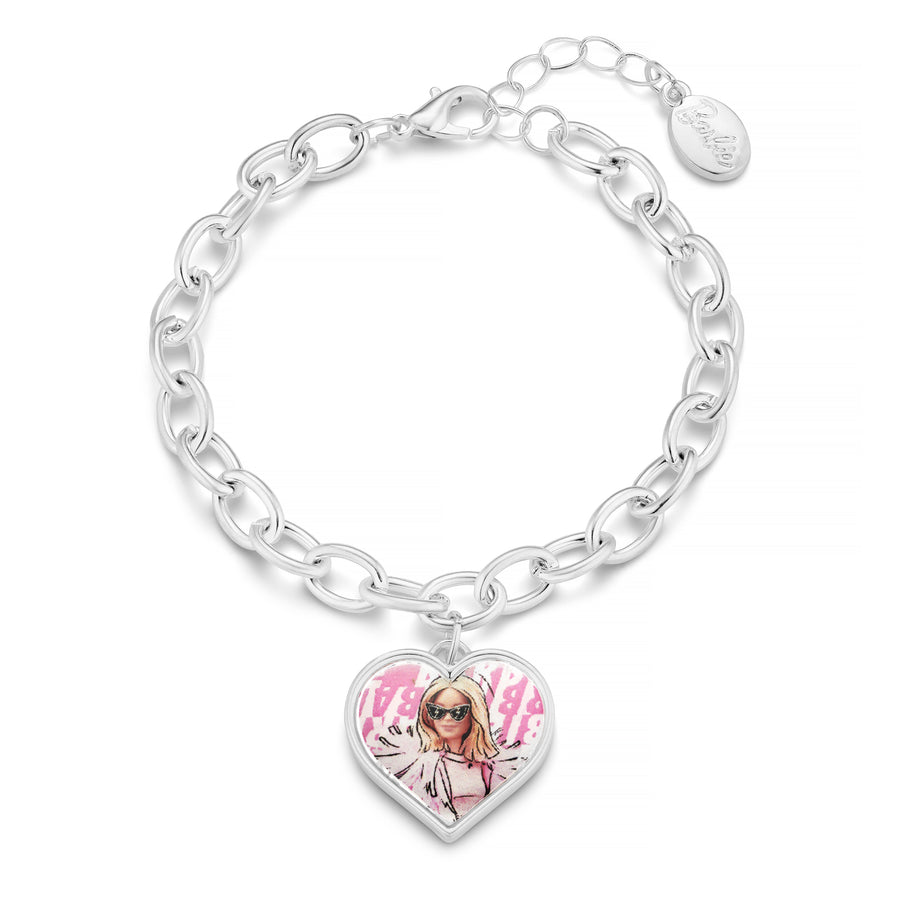This gorgeous bracelet features your favourite Barbie® doll within a silver heart charm, on a 6" chain. Taken from the official Barbie® range this piece is perfect for every fan.