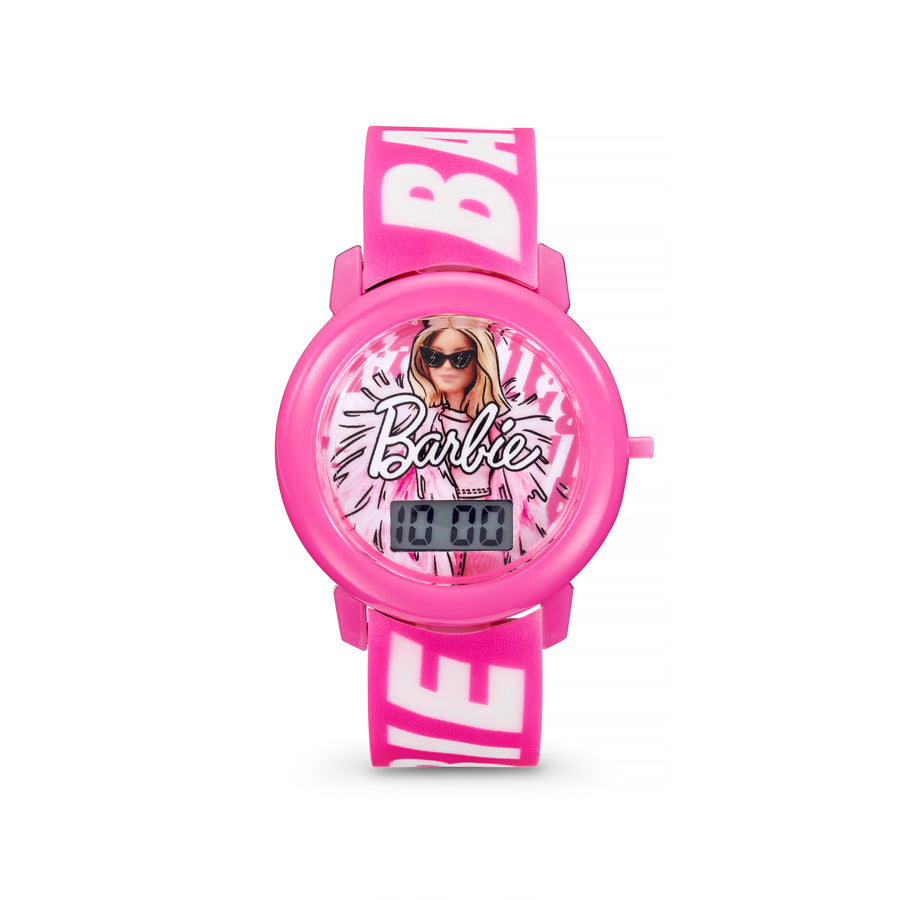 This cute Barbie® watch is perfect for both children and adults. The digital watch face features the iconic Barbie doll overlaid with the classic Barbie® logo. A rubber pink strap, with contrast white Barbie text, adds a pop of colour to your wrist. Taken from the official Barbie® range - perfect for every fan.