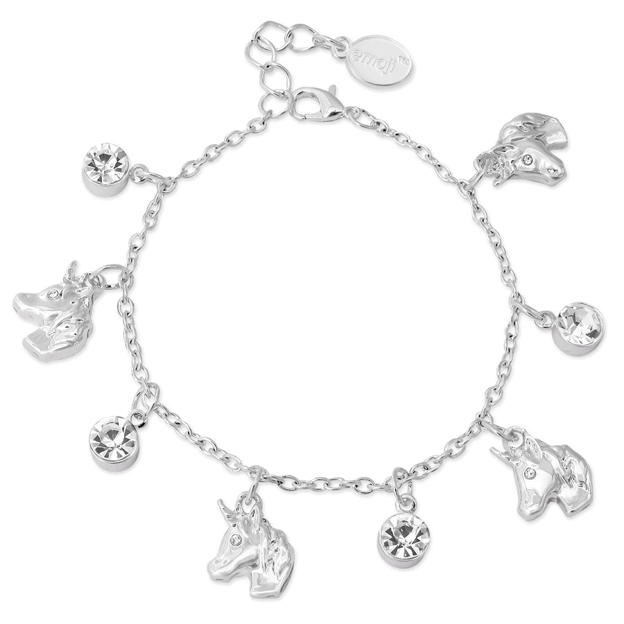 This gorgeous official emoji bracelet features unicorn and crystal charms. 4x unicorn emoji charms and 4x crystal charms.