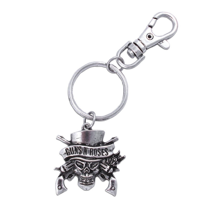 This keyring from the official Guns N' Roses range features their classic skull logo.  This product is Antique Silver plated base metal.